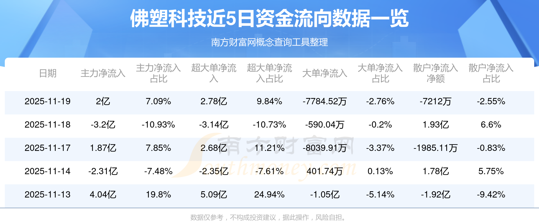 11月19日消息,佛塑科技11月19日主力净流入2亿元,超大单净流入2.78亿元,大单净流出7784.52万元,散户净流出7212万元。