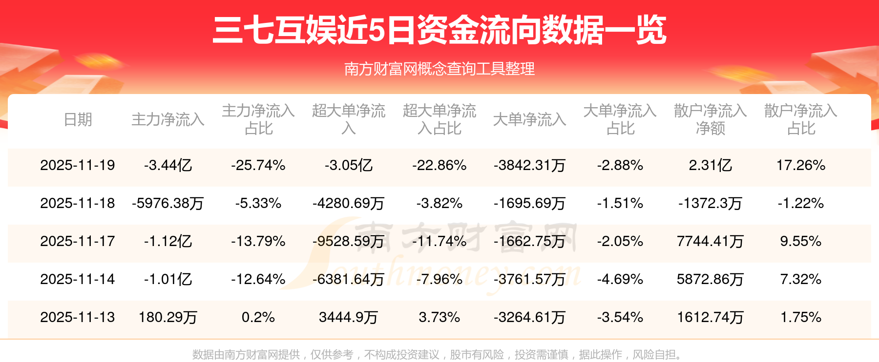 11月13日消息,三七互娱7日内股价下跌8.01%,截至下午三点收盘,该股报20.090元,涨0.14%,总市值为444.44亿元。