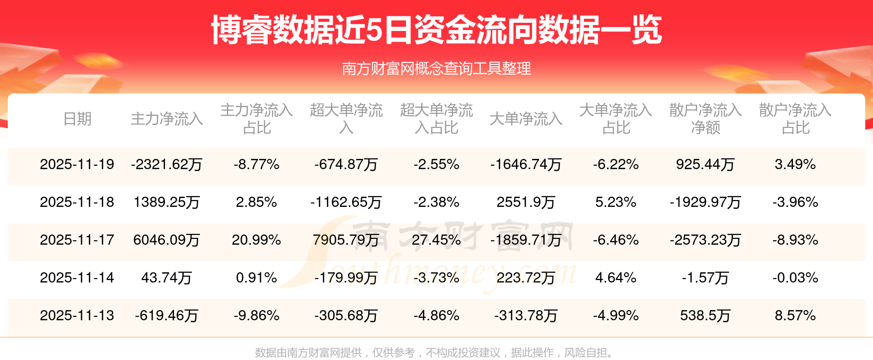 近5日资金流向一览见下表: