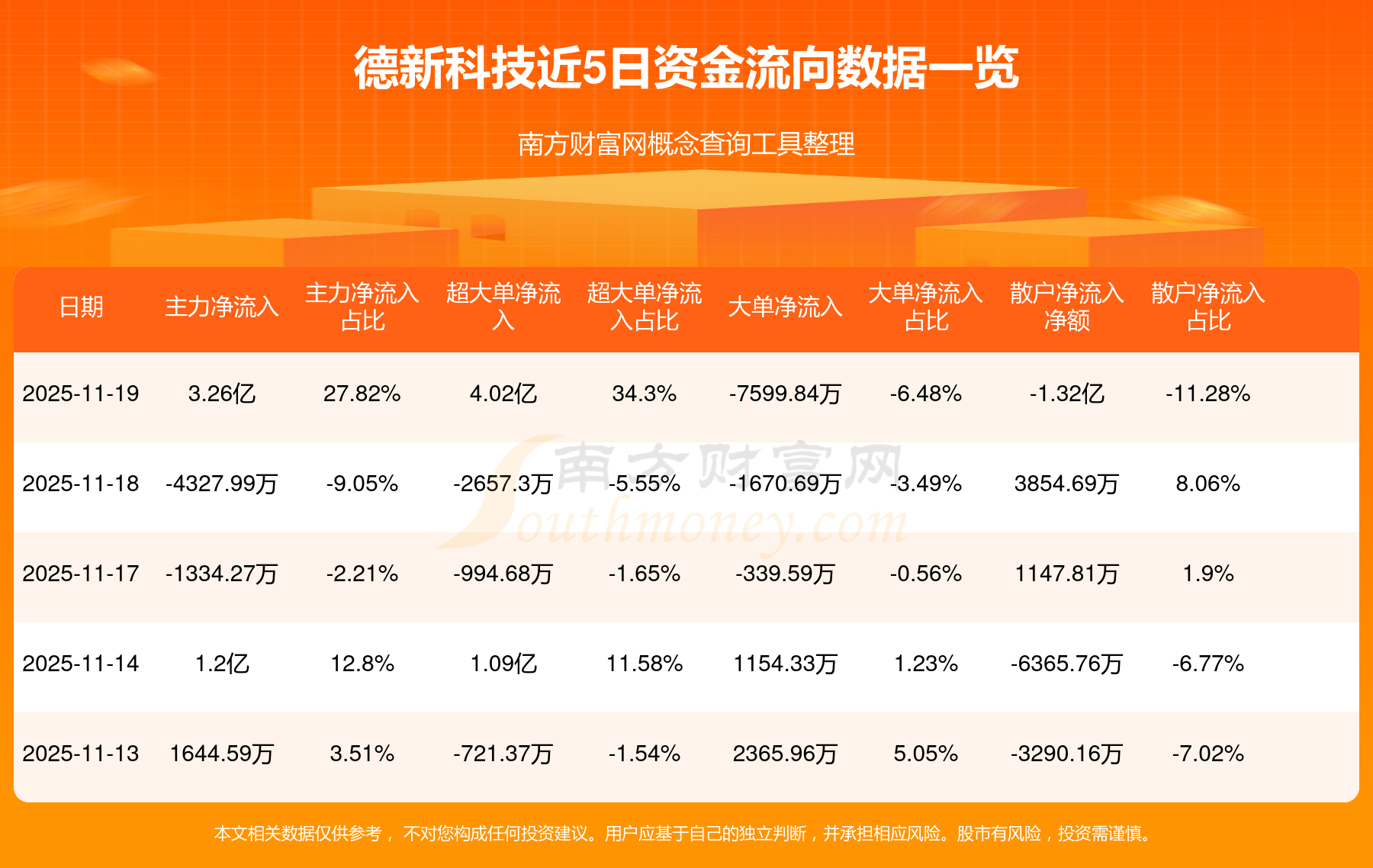 11月19日该股主力资金净流入3.26亿元,超大单资金净流入4.02亿元,大单资金净流出7599.84万元,中单资金净流出1.94亿元,散户资金净流出1.32亿元。