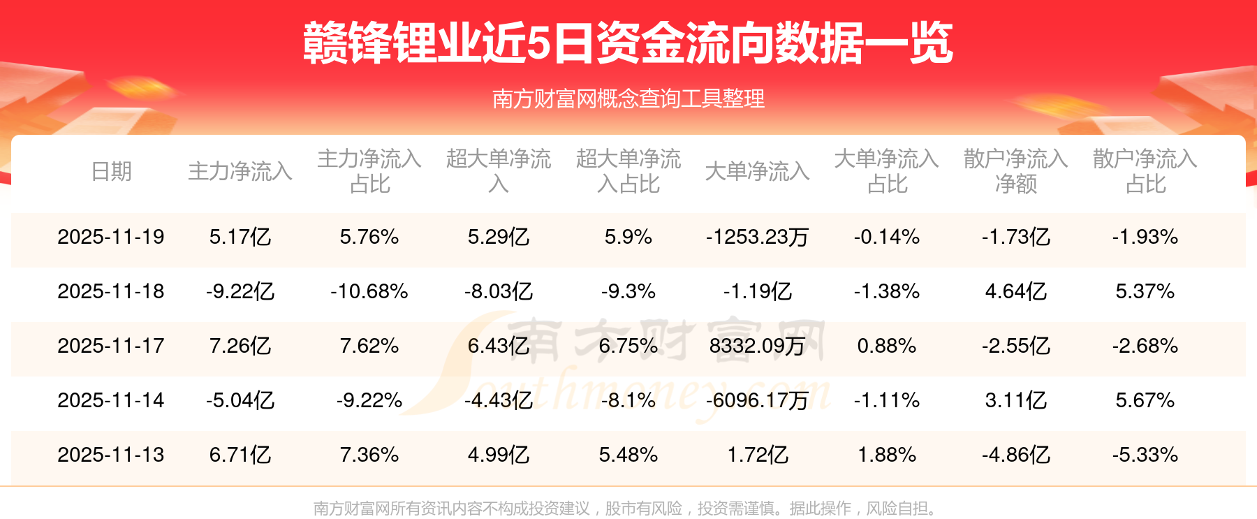 赣锋锂业(002460)主营业务为锂产品、锂电新材料与储能电池的研发、生产和销售。于2025年第二季度,赣锋锂业披露了其业绩表现,其中主营业务收入46.04亿元,相较于去年同期1.62%。此外,公司归属于母公司的净利润为-1.75亿元,同比增长了45.44%。在扣除所有非经常性损益后,净利润-6.71亿元,同比增长-815%。