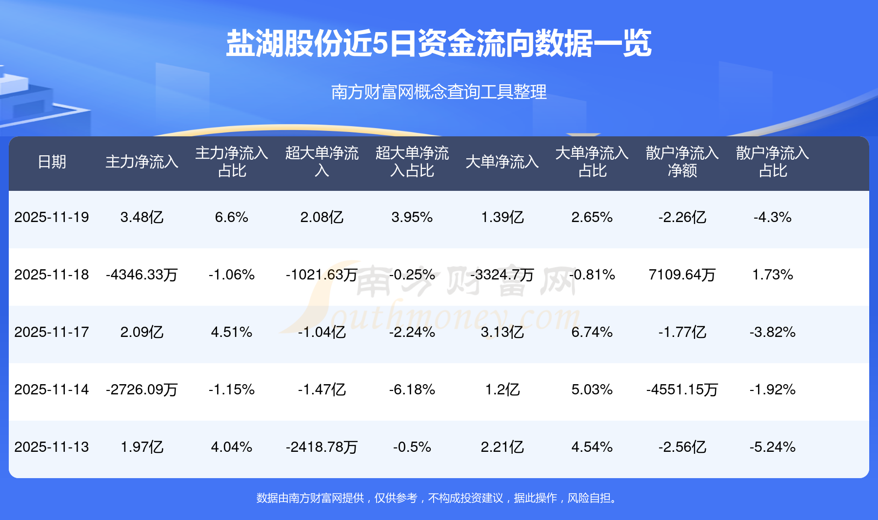 11月19日消息,盐湖股份资金净流入3.48亿元,超大单资金净流入2.08亿元,换手率3.58%,成交金额52.65亿元。