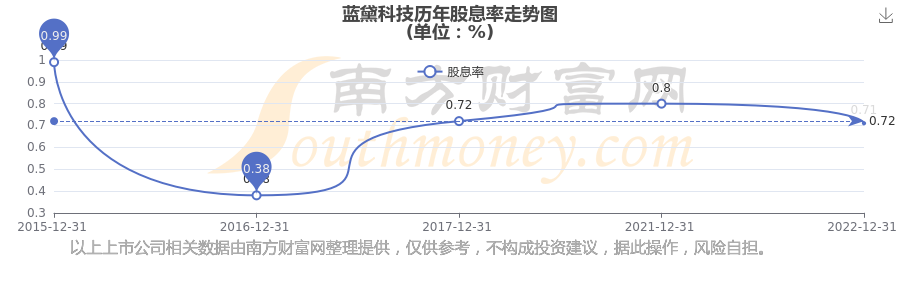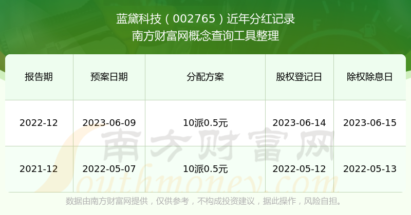 蓝黛科技最新一次公布的分红方案为10派0.5元。本次权益分派股权登记日为2023年6月14日,除权除息日为2023年6月15日,派息日为2023年6月15日。