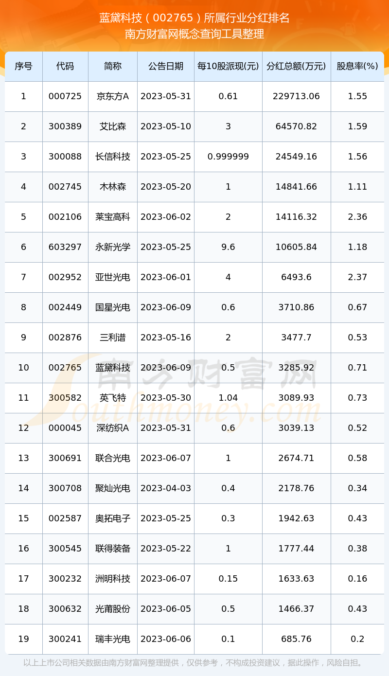 按照开云手机web版登录入口趋势选股系统统计,蓝黛科技所属行业为光学光电子行业,光学光电子行业分红排名情况如下表: