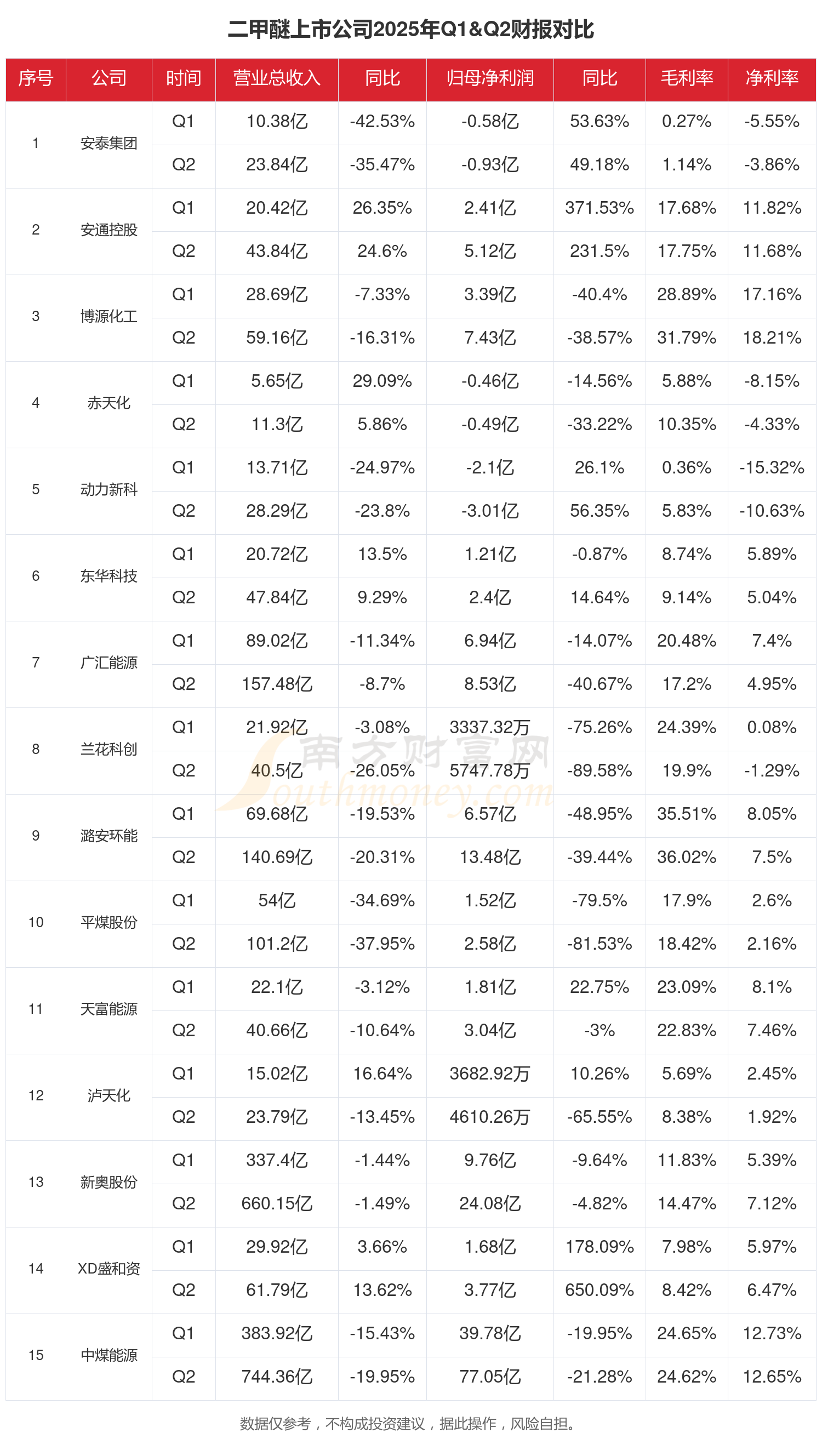 兰花科创(600123):2025年第二季度,兰花科创公司营业总收入同比增长-42.21%至18.58亿元;净利润为2410.47万,同比增长-94.22%,毛利润为2.71亿,毛利率14.59%。