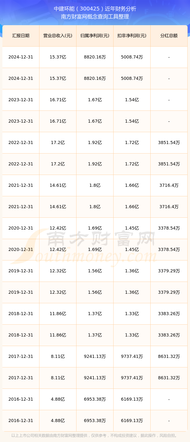 中建环能2024年总营收15.37亿,同比增长-8.06%;净利润8820.16万,同比增长-47.33%;销售毛利率30.48%。