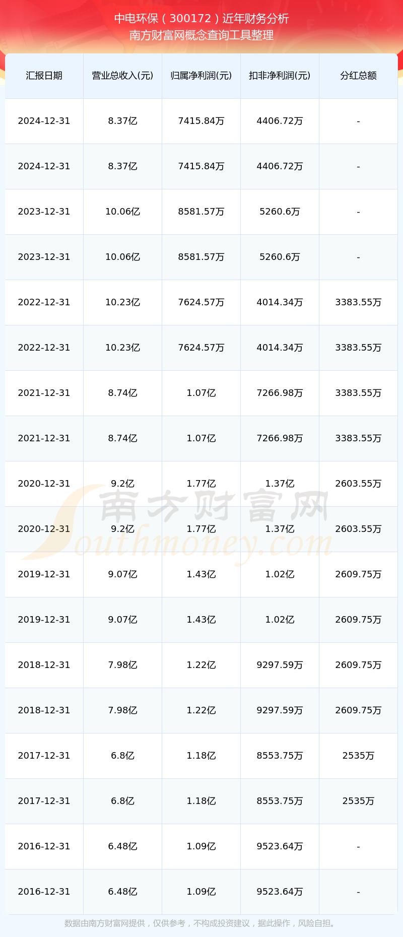 中电环保最新一次公布的分红方案为10派0.5元。本次权益分派股权登记日为2023年4月27日,除权除息日为2023年4月28日,派息日为2023年4月28日。