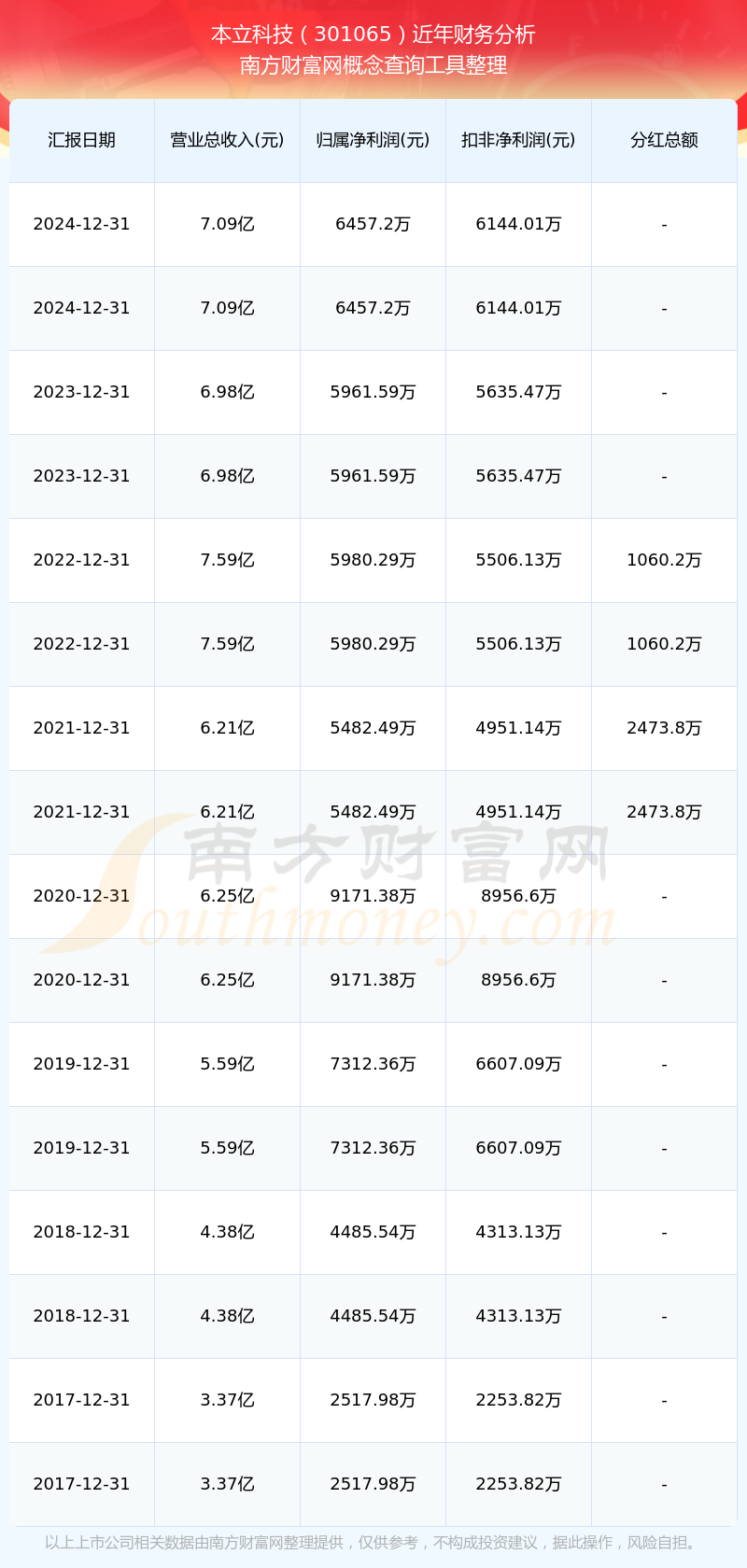 本立科技公司2024年实现营收7.09亿元,净利润6457.2万元,毛利率17.01%。