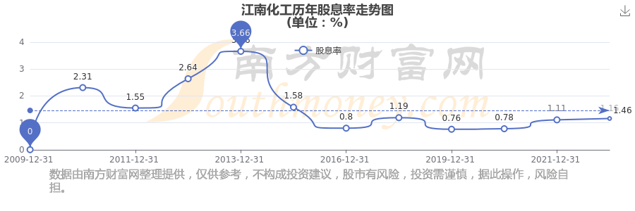 近年江南化工年度股息率走势如下图: