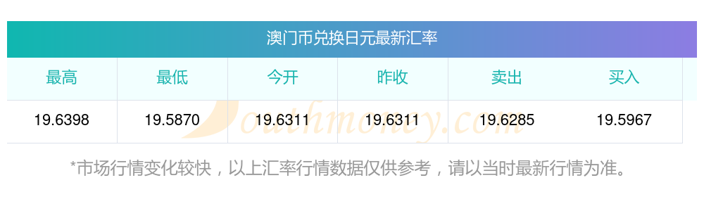 开云手机web版登录入口为您提供澳门币对日元汇率最新价格详情。
