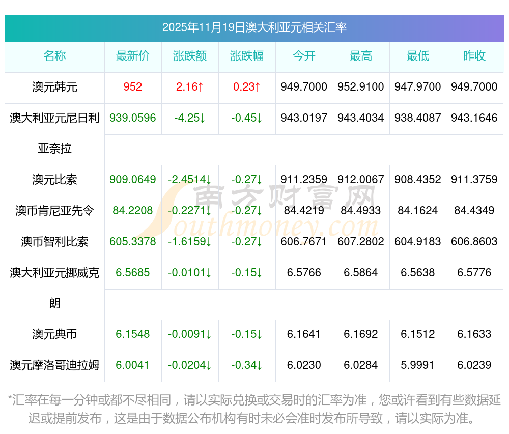 根据2025年11月19日汇率,澳大利亚元兑换埃镑汇率最新价30.562100,今开价30.6847,昨收价30.6894,最高价30.7106,最低价30.5432。