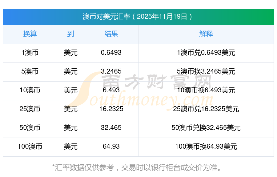 现在245澳元与美元的汇率是多少?2025/11/19