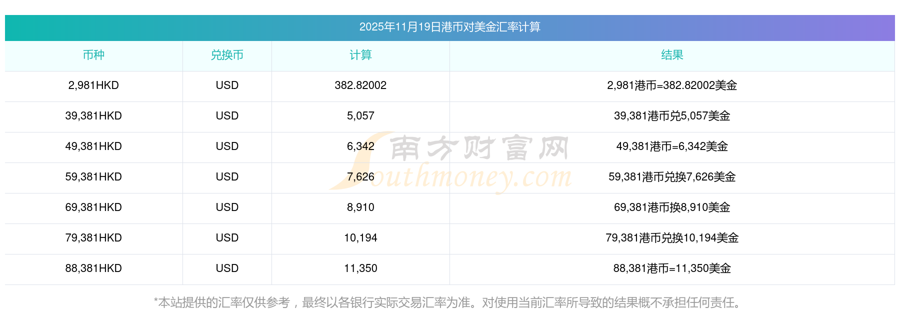 2025年11月19日汇率行情:5港币对美金汇率多少