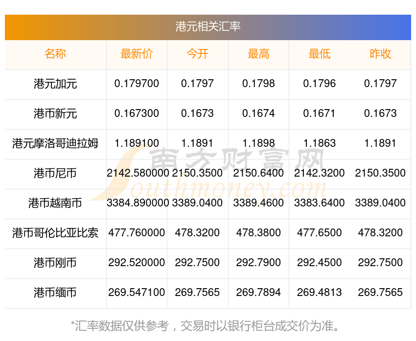 2025年11月19日港元相关汇率查询