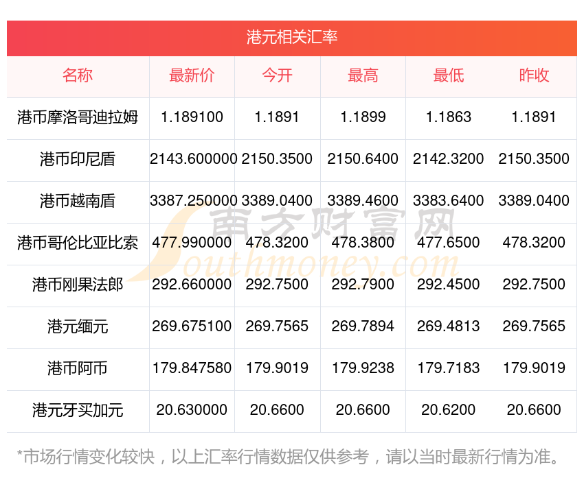 2025年11月19日港元相关汇率查询
