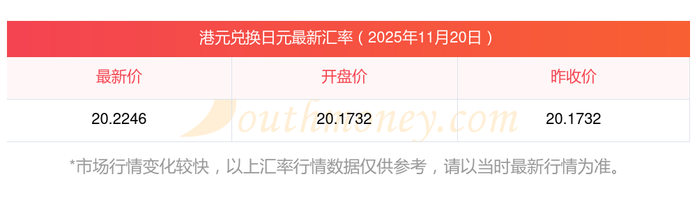 2025年11月20日港元vs日元的汇率是多少?