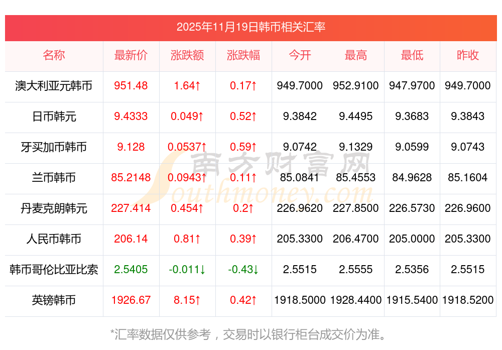 2025年11月19日韩币相关汇率查询