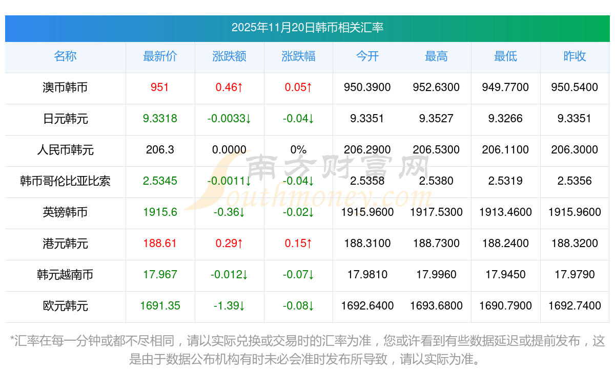 2025年11月20日韩币相关汇率查询