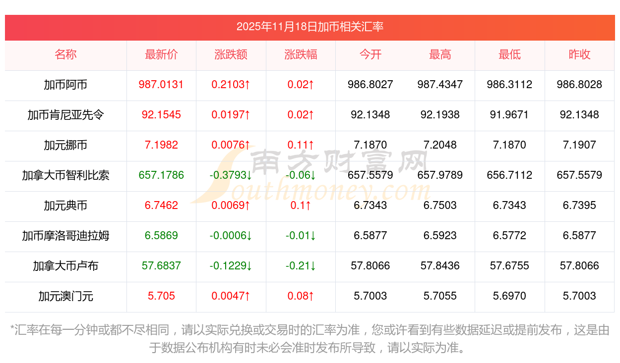 根据2025年11月18日汇率,加币兑换缅币汇率最新1494.343500,今开1494.0779,昨收1494.0783,最高1495.0345,最低1493.3335。