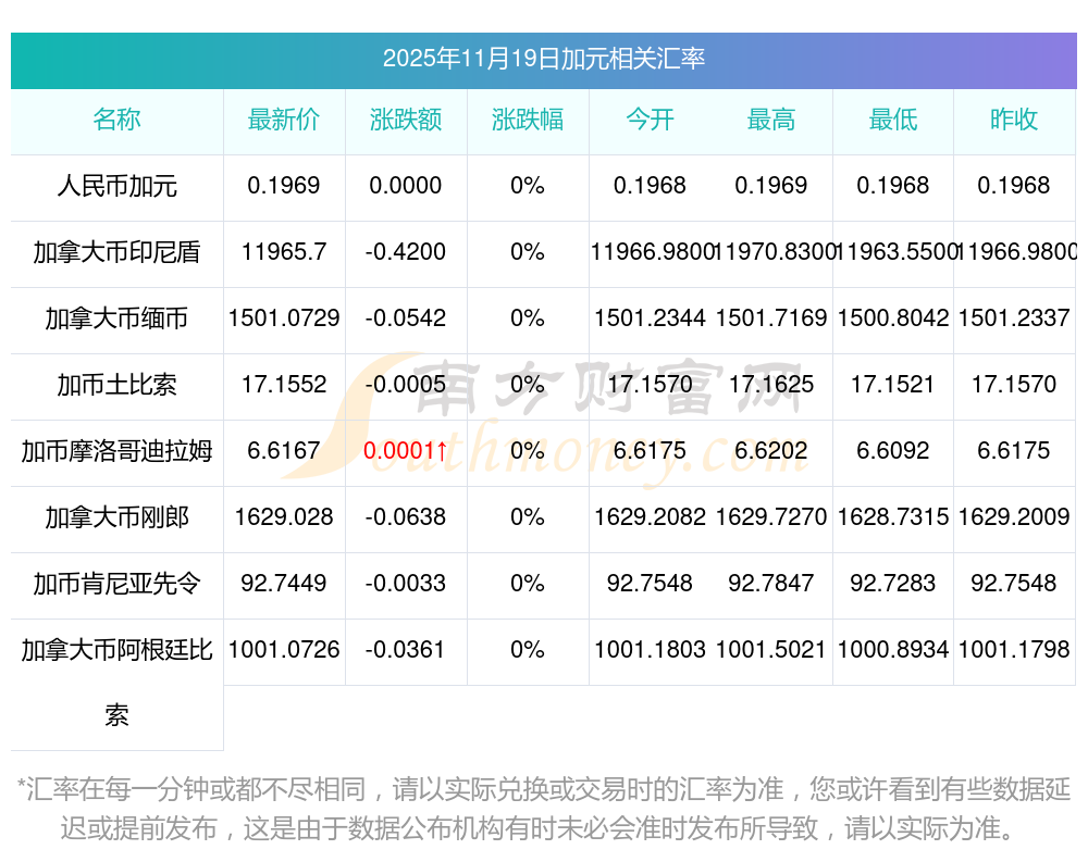 根据2025年11月19日汇率,加元兑换尼日利亚奈拉汇率最新1033.660000,今开1036.1000,昨收1036.1000,最高1036.3100,最低1033.6600。