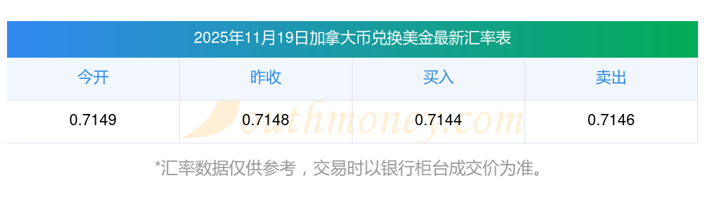 1加拿大币=0.71449美金