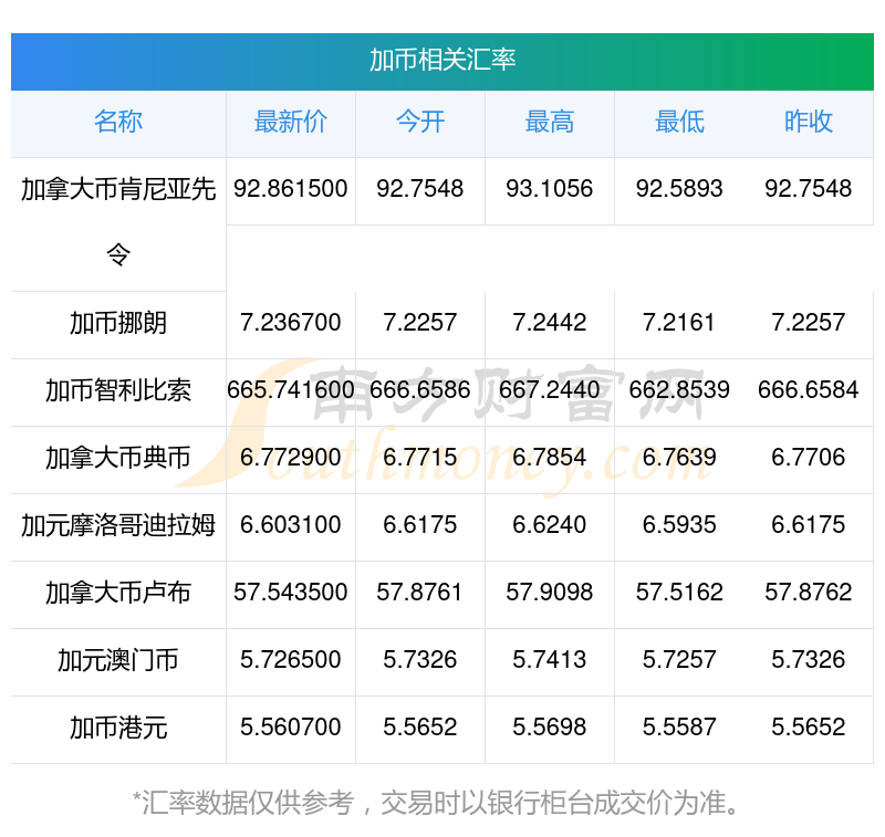 以上汇率数据仅供参考,请以各银行实际交易汇率为准。