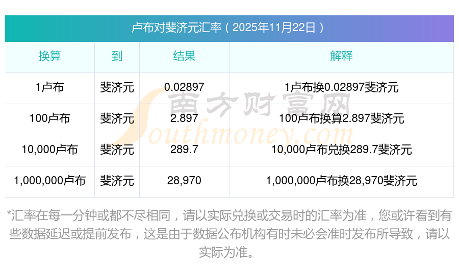 今天卢布兑换斐济元汇率价是多少?外汇汇率兑换查询
