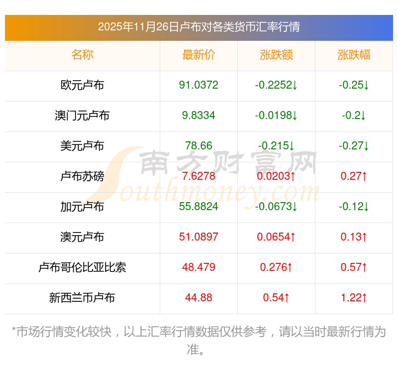 根据2025年11月26日汇率计算,卢布兑换缅币汇率最新价26.663300,今开价26.5958,昨收价26.6244,最高价26.6972,最低价26.5958。