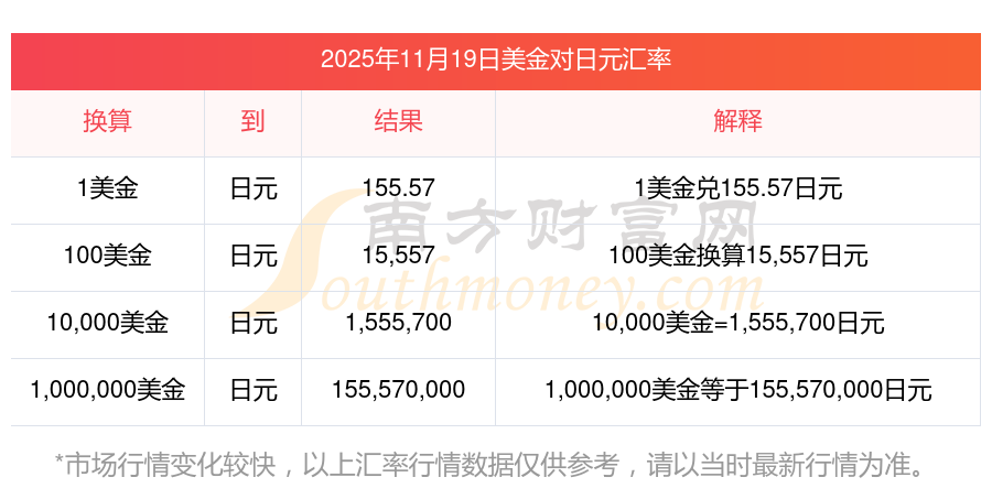 日元今日汇率实时查询 107美金对日元汇率2025年11月19日