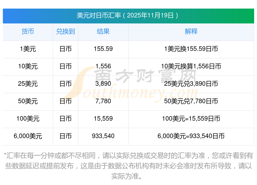 今天7兑换为 | 将美元转换为日币是多少? 2025/11/19