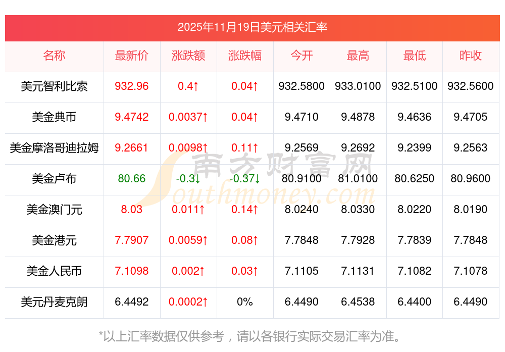 汇率在每一分钟或都不尽相同,请以实际兑换或交易时的汇率为准,您或许看到有些数据延迟或提前发布,这是由于数据公布机构有时未必会准时发布所导致,请以实际为准。