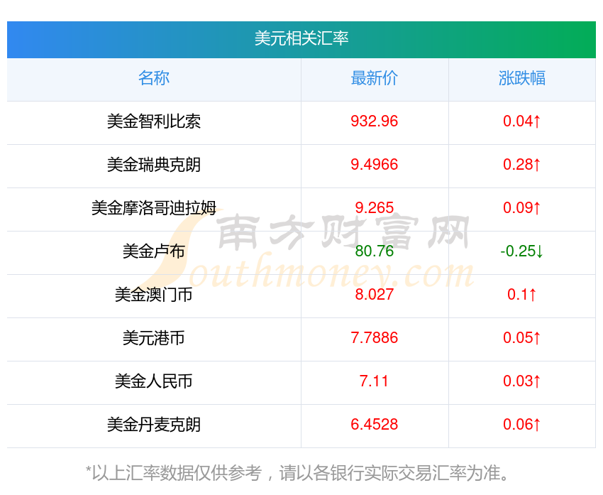 市场行情变化较快,以上汇率行情数据仅供参考,请以当时最新行情为准。