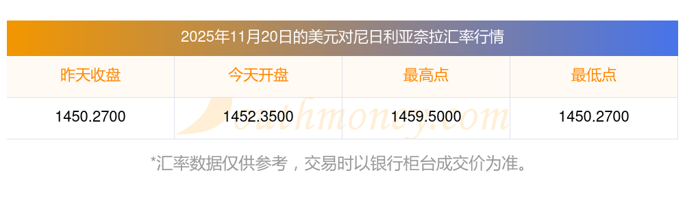今日汇率调整:美元兑换尼日利亚奈拉汇率一览表(2025-11-20)