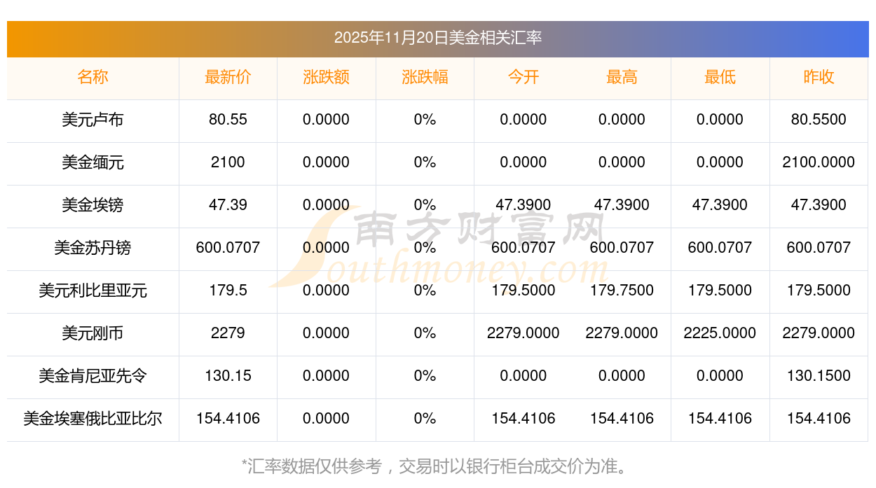 2025年11月20日美金兑换欧元最新汇率:0.868508,今开:0.8668,昨收:0.8668,最高:0.8688,最低:0.8664。