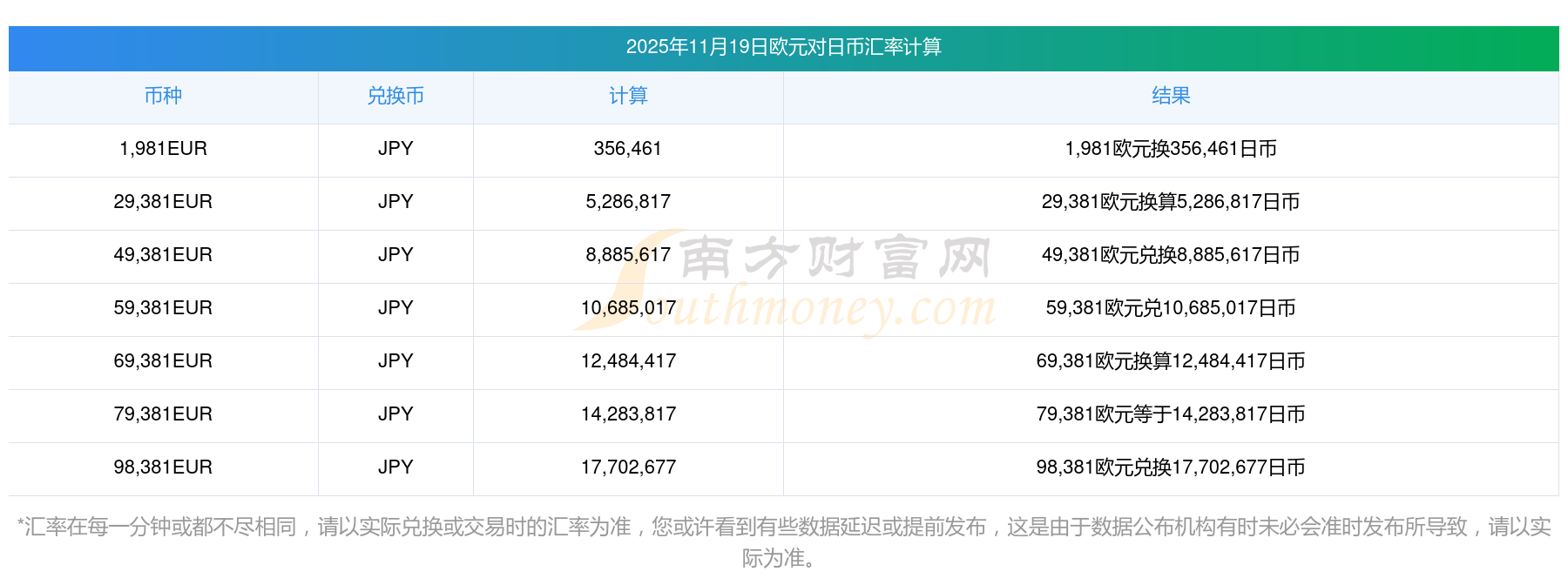 日币今日汇率实时查询 121欧元对日币汇率11月19日