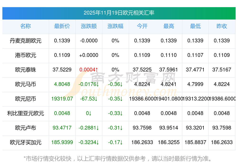 根据2025年11月19日汇率计算,EUR兑换JMD汇率最新价185.939900: