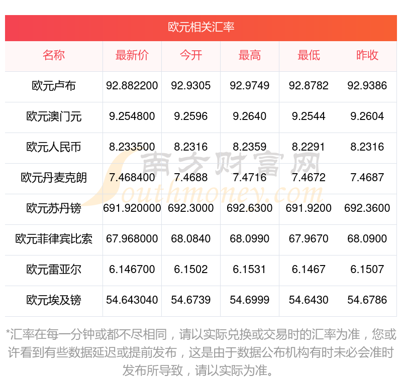 汇率在每一分钟或都不尽相同,请以实际兑换或交易时的汇率为准,您或许看到有些数据延迟或提前发布,这是由于数据公布机构有时未必会准时发布所导致,请以实际为准。