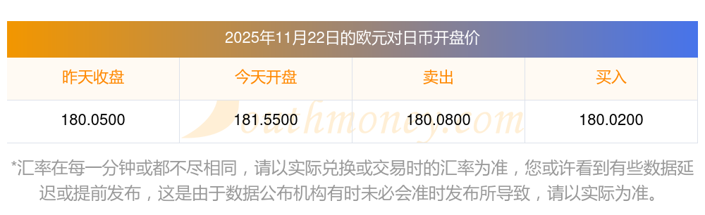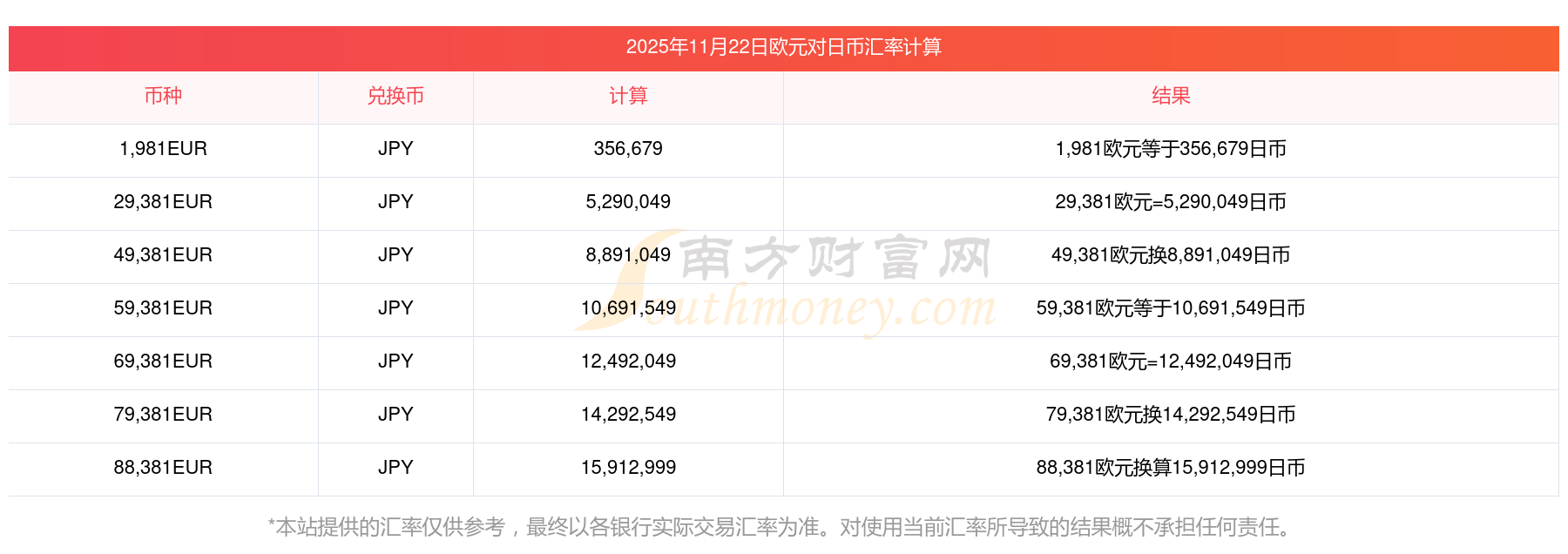 日币今日汇率实时查询 121欧元对日币汇率2025-11-22
