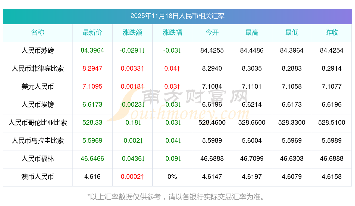汇率调整新消息:人民币兑雷亚尔汇率查询表11月18日