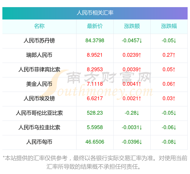 汇率在每一分钟或都不尽相同,请以实际兑换或交易时的汇率为准,您或许看到有些数据延迟或提前发布,这是由于数据公布机构有时未必会准时发布所导致,请以实际为准。