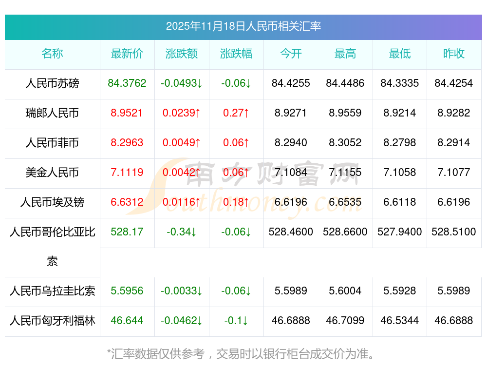 汇率数据仅供参考,交易时以银行柜台成交价为准。