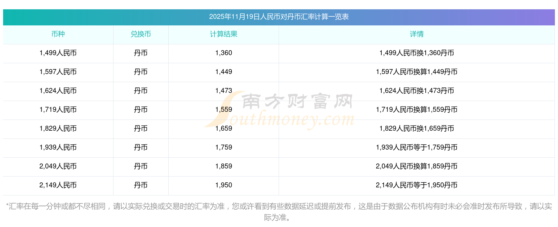 今日汇率中间价:人民币1元对多少丹麦克朗2025-11-19