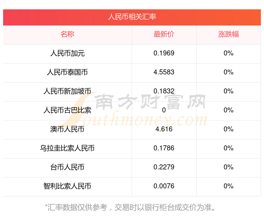 汇率在每一分钟或都不尽相同,请以实际兑换或交易时的汇率为准,您或许看到有些数据延迟或提前发布,这是由于数据公布机构有时未必会准时发布所导致,请以实际为准。