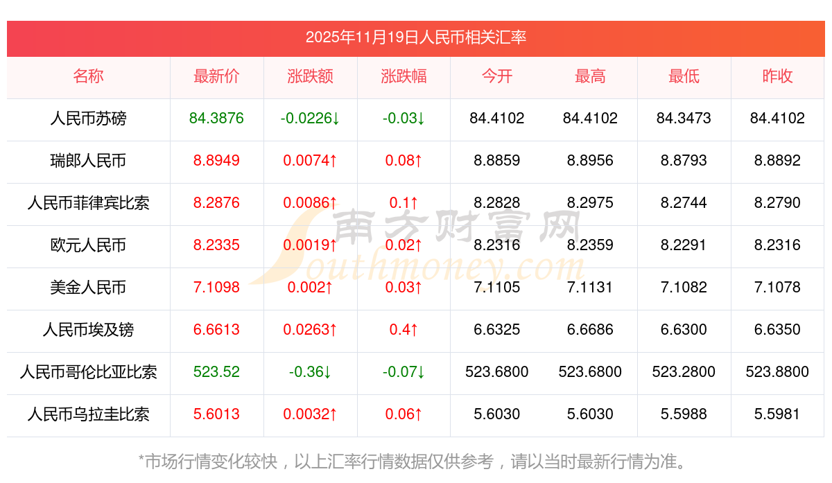 2025年11月19日人民币相关汇率查询
