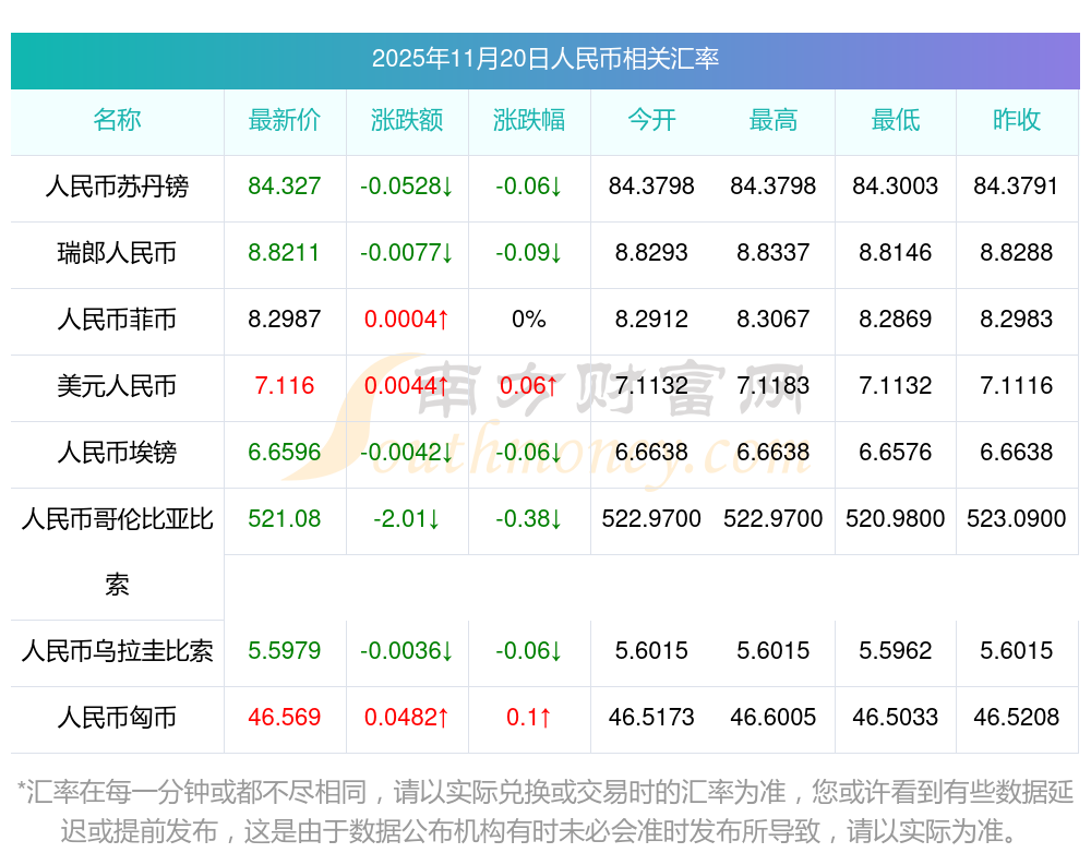2025年11月20日人民币兑换墨币最新汇率:2.577750,今开:2.5787,昨收:2.5788,最高:2.5802,最低:2.5770。