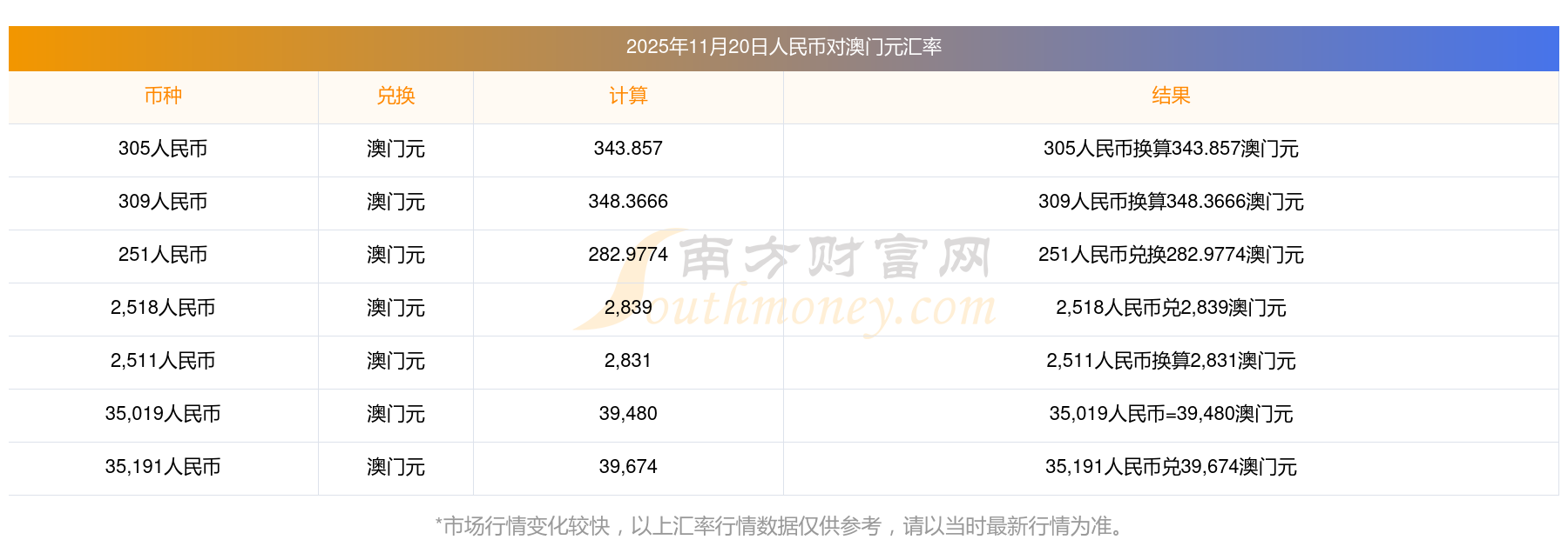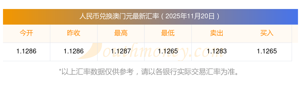 查询:2025年11月20日人民币兑澳门元汇价一览