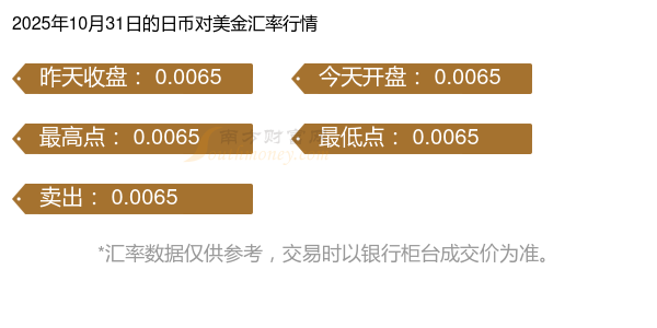 现在4630日元与美元的互换汇率是多少?2025-10-31