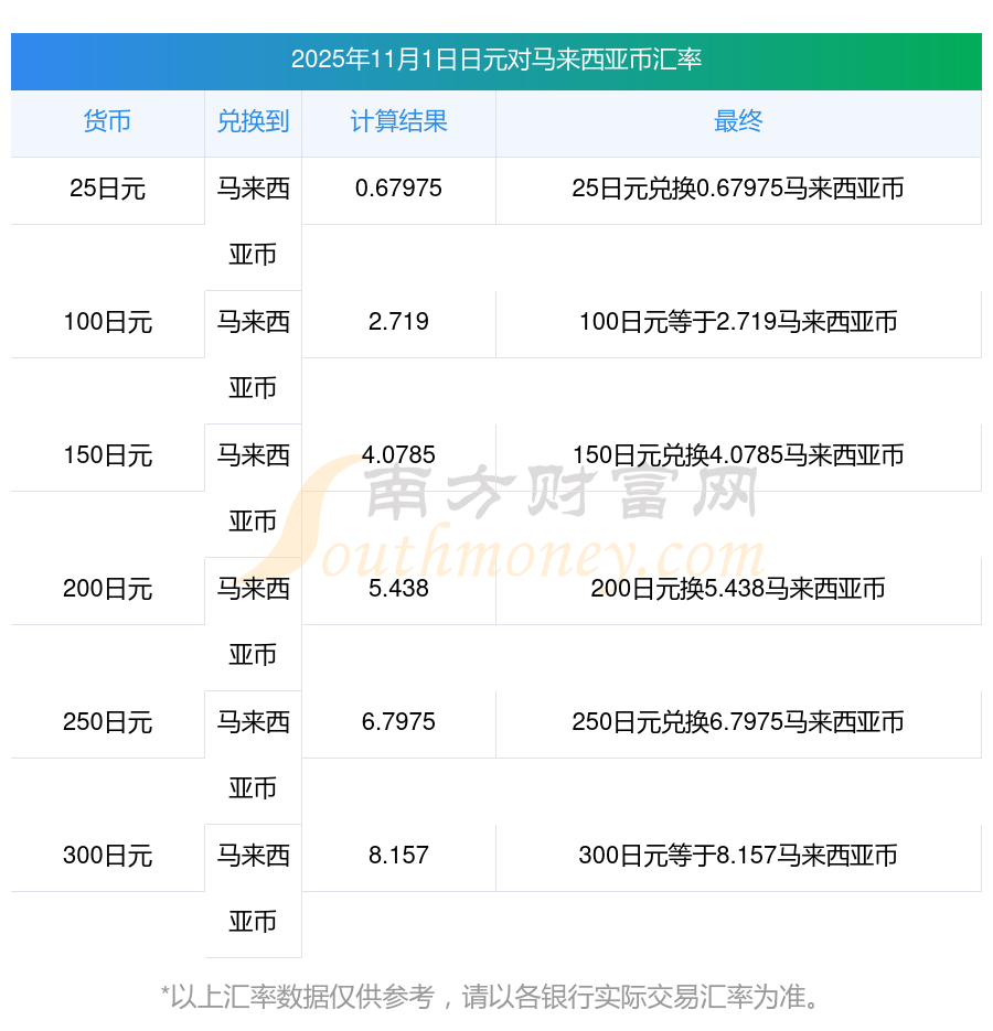 查询_2025年11月1日1日元兑马来西亚币汇率