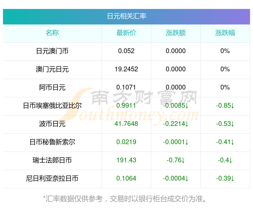 本站提供的汇率仅供参考,最终以各银行实际交易汇率为准。对使用当前汇率所导致的结果概不承担任何责任。