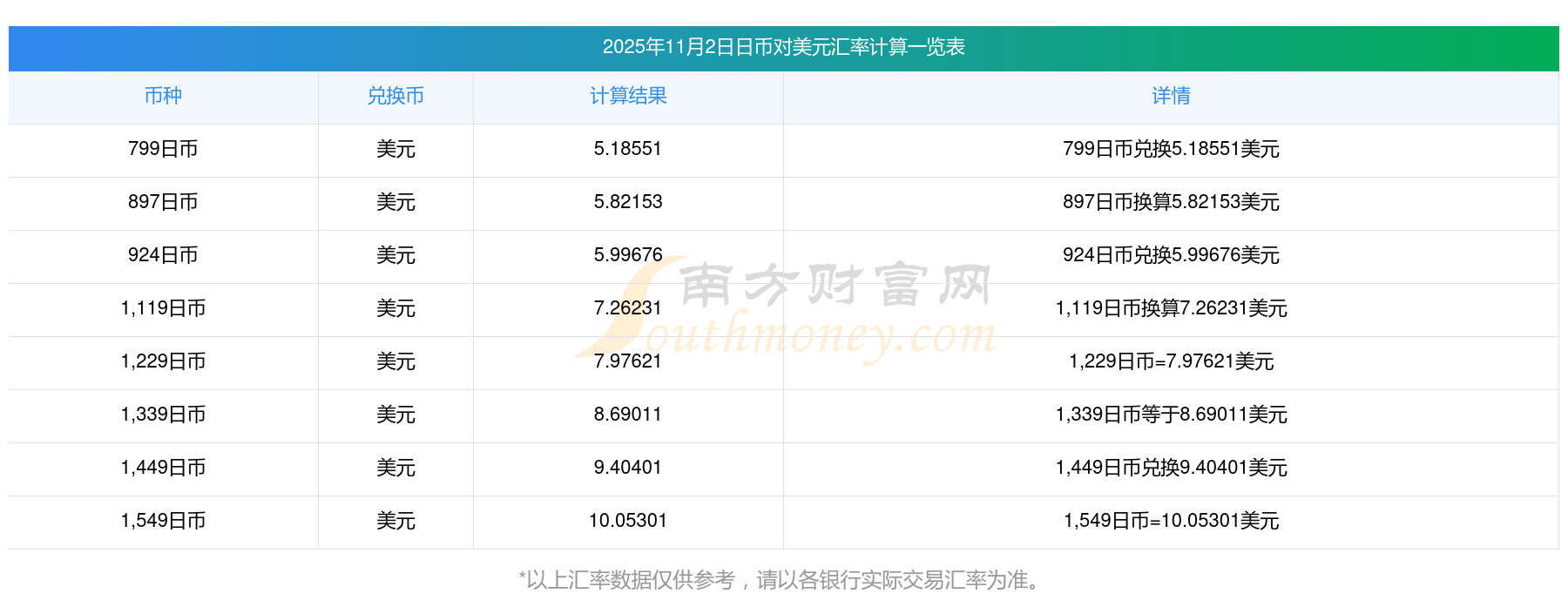 2025年11月2日日币兑换美元汇率是:0.00649